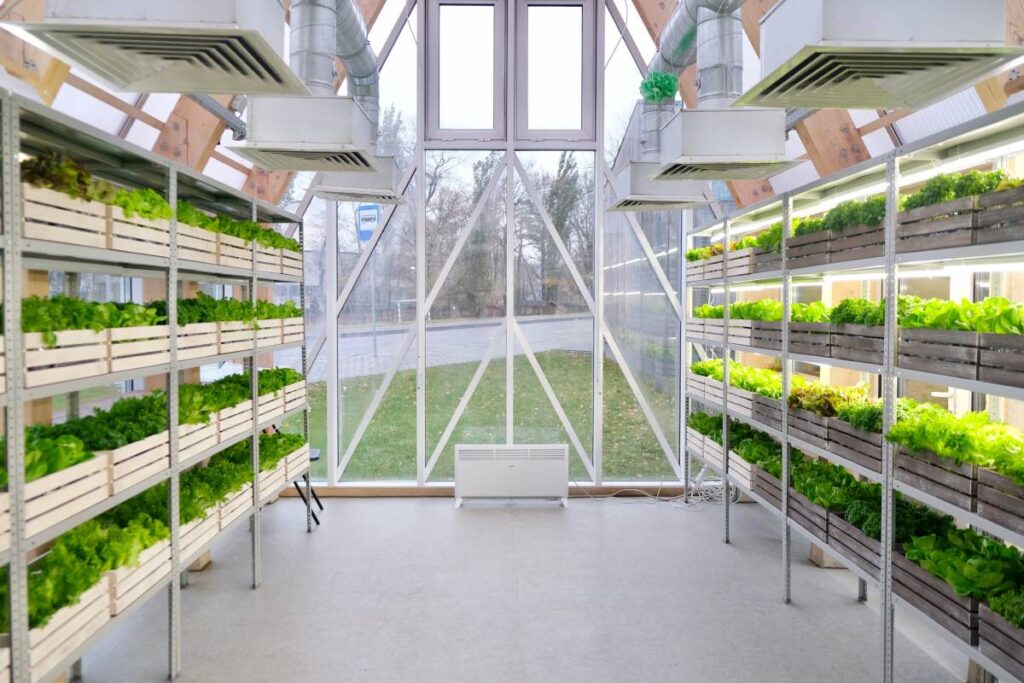 - Indoor vertical farms use hydroponics to grow large amounts of produce in small spaces.